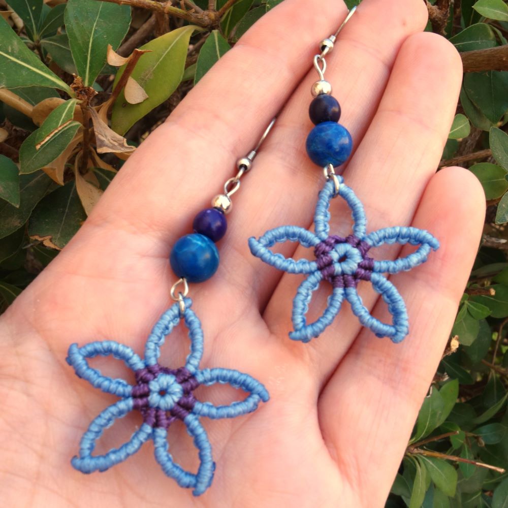 BloomJoy Mini – μακραμε σκουλαρίκια λουλουδάκια με χαολίτες