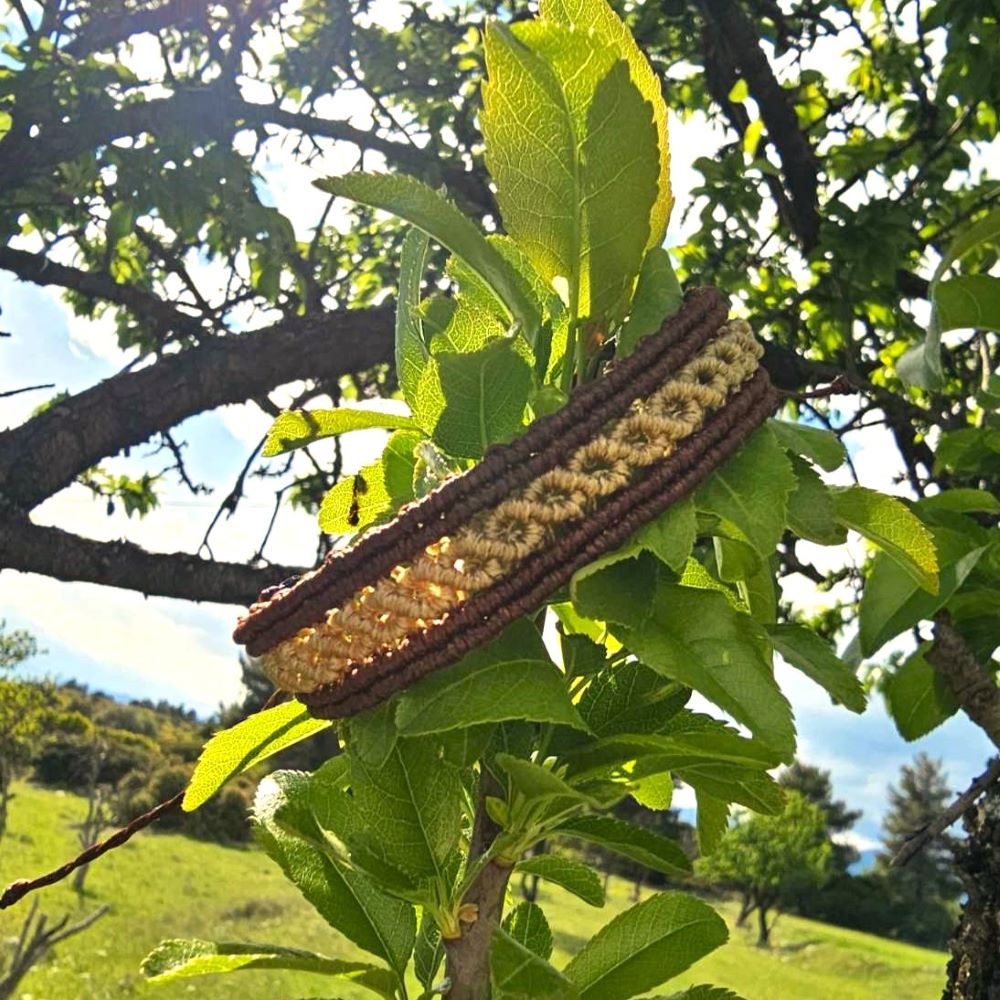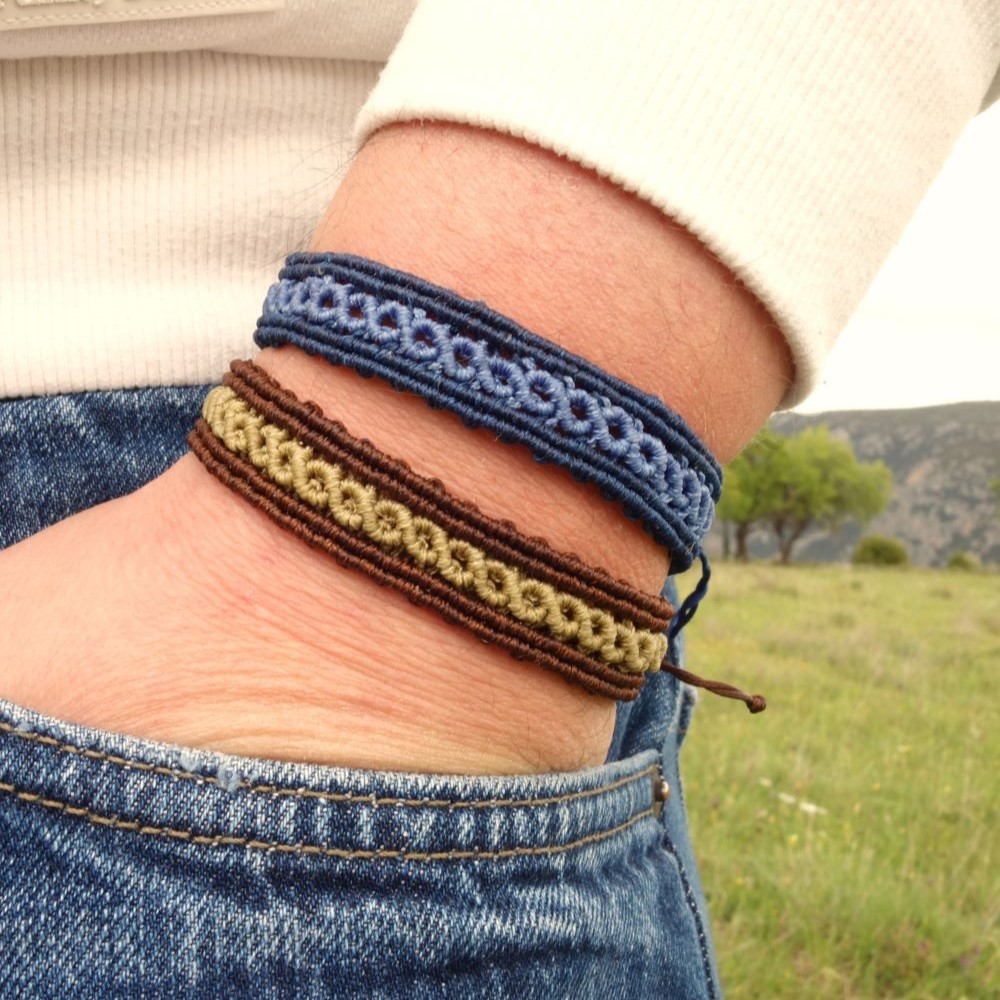 Έχει δημιουργηθεί με την τεχνική του μακραμε, κόμπο κόμπο, με κηροκλωστή εξαιρετικής ποιότητας για αντοχή και σταθερότητα στη χρήση.