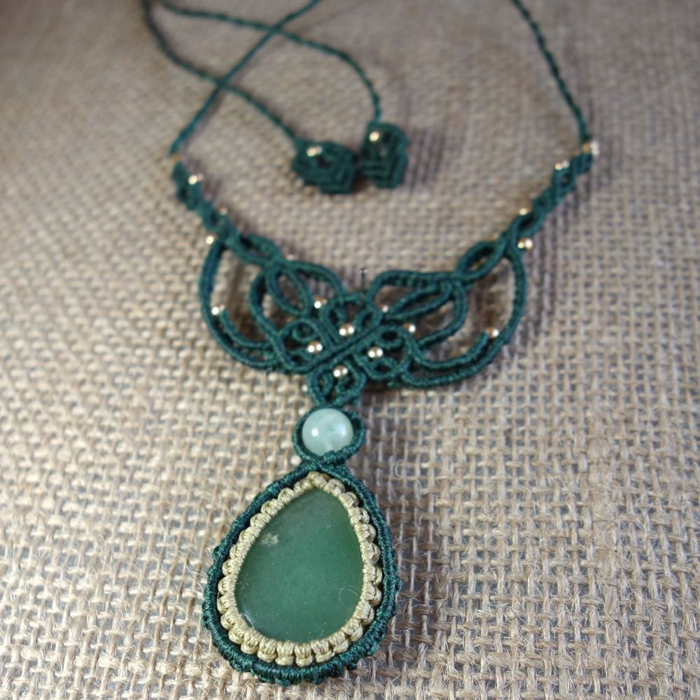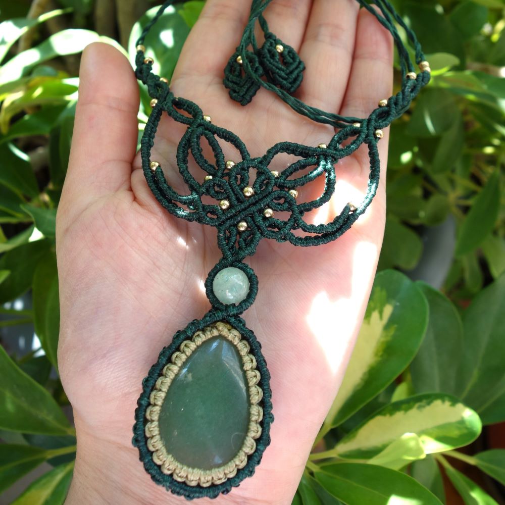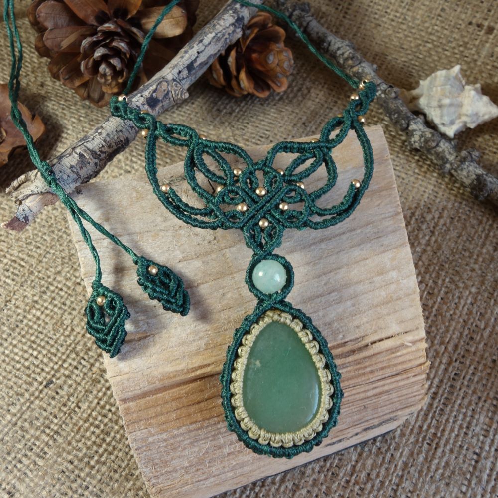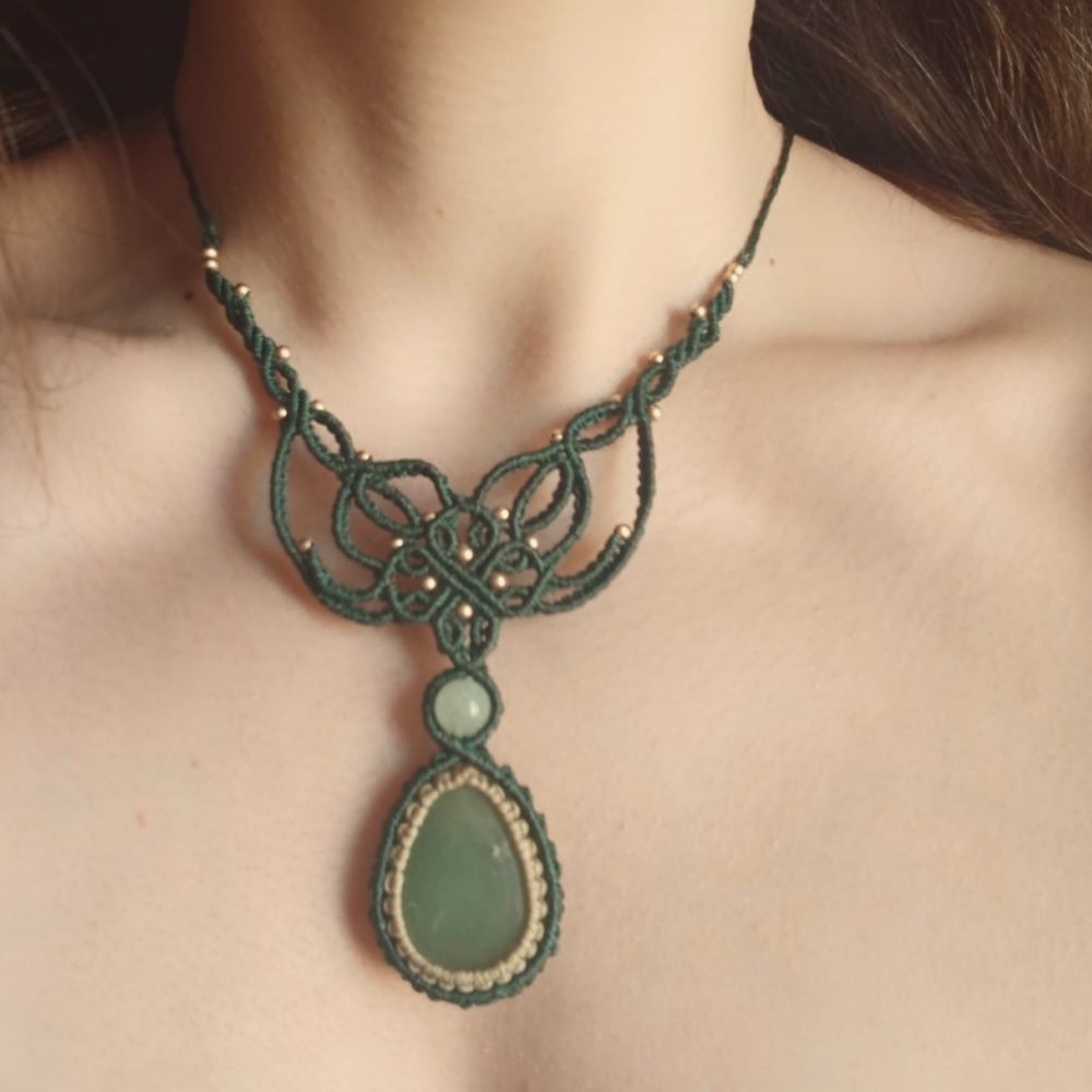 Ένα κόσμημα που αποπνέει σύνδεση με τη φύση και γήινη ηρεμία. Το Emerald Forest Amulet είναι χειροποίητο μακραμέ κολιέ, φτιαγμένο με κηροκλωστή άριστης ποιότητας, με λεπτοδουλεμένη πλέξη που αναδεικνύει τη ροή του σχεδίου.