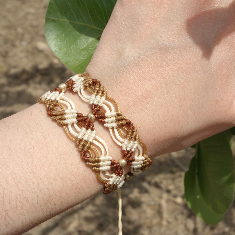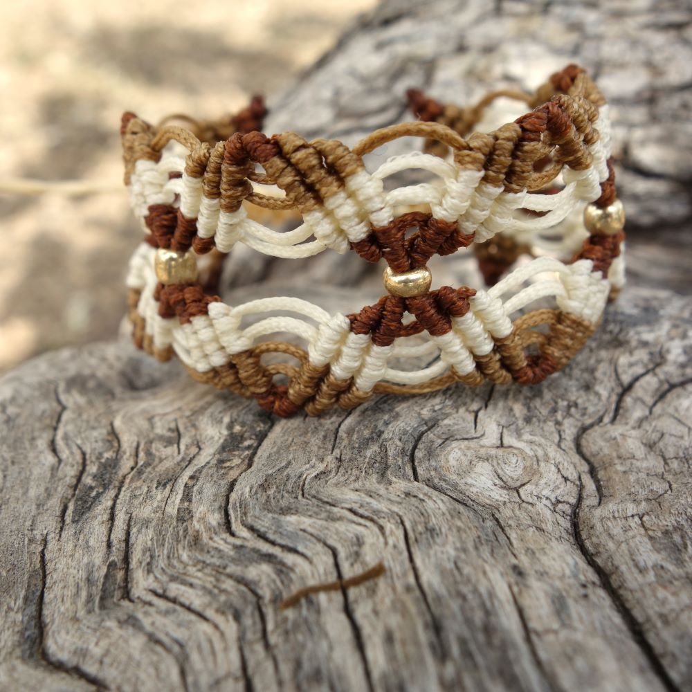 Οι καφέ και μπεζ αποχρώσεις θυμίζουν άμμο και φυσικά στοιχεία, κάνοντάς το ιδανικό για καθημερινή χρήση αλλά και για boho εμφανίσεις. Κλείνει με αυξομείωση, ώστε να προσαρμόζεται άνετα σε κάθε καρπό.