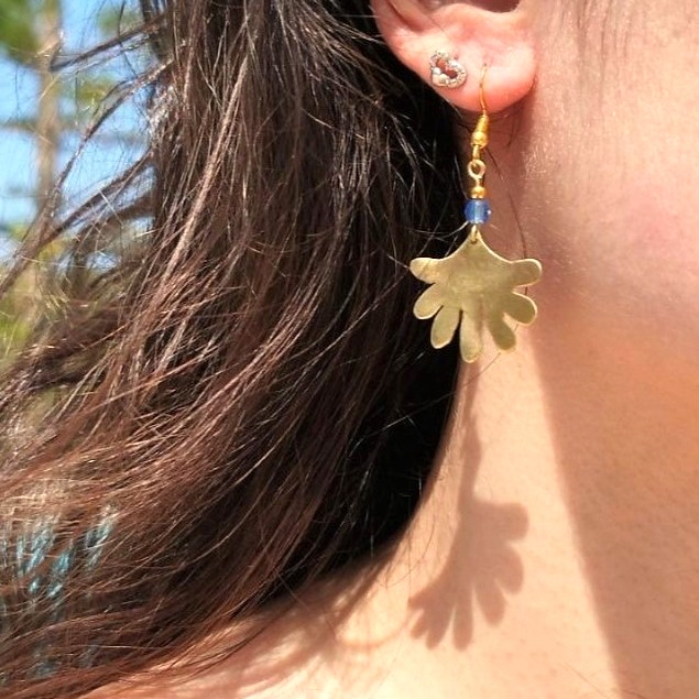 Τα Golden Petal είναι χειροποίητα σκουλαρίκια από ορείχαλκο που αποπνέουν φυσική κομψότητα και καλλιτεχνική απλότητα. Το οργανικό τους σχήμα θυμίζει πέταλο λουλουδιού που ανοίγει, δημιουργώντας μια αίσθηση κίνησης και ελευθερίας.