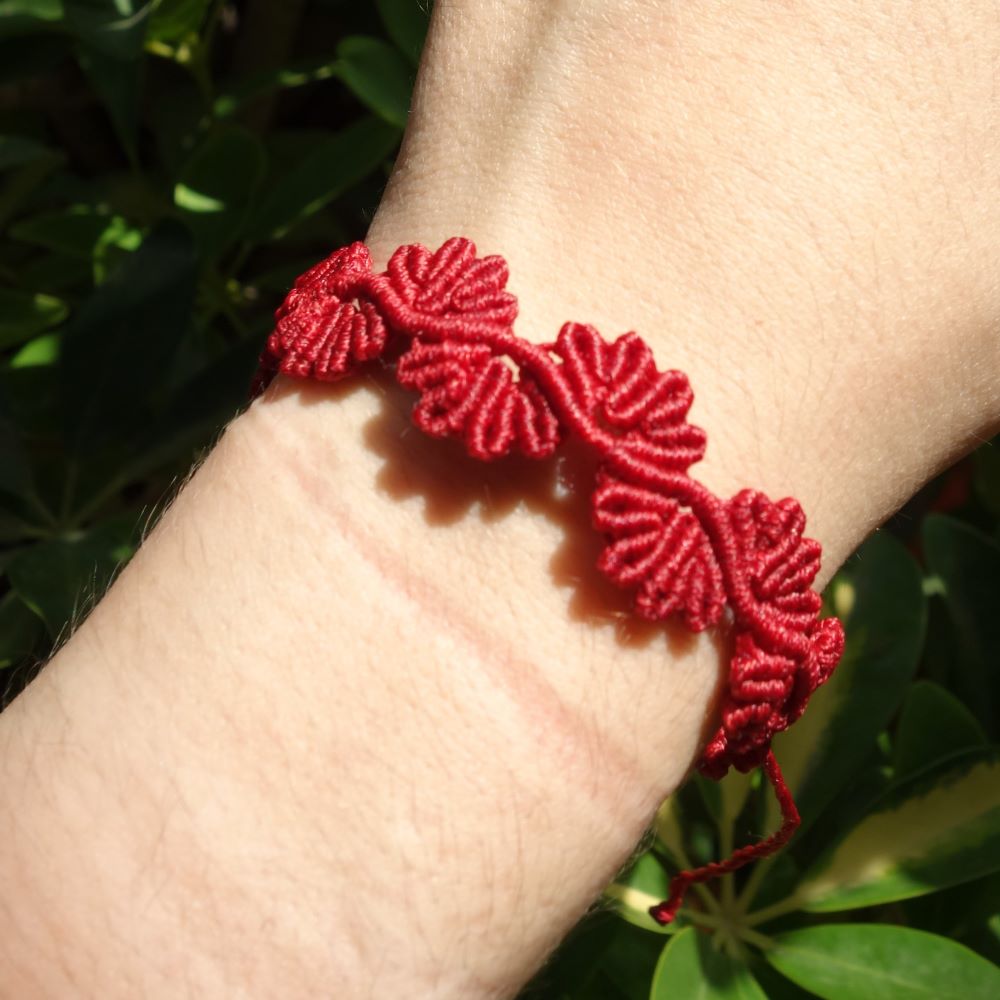 Το Red Bloom Bracelet είναι ένα χειροποίητο μακραμε βραχιόλι που συμβολίζει τη δύναμη, το πάθος και την αναγέννηση. Το ανάγλυφο ανθισμένο σχέδιο δημιουργεί ένα δυναμικό αποτέλεσμα που ξεχωρίζει, ενώ το κόκκινο χρώμα προσθέτει ένταση και χαρακτήρα σε κάθε εμφάνιση.