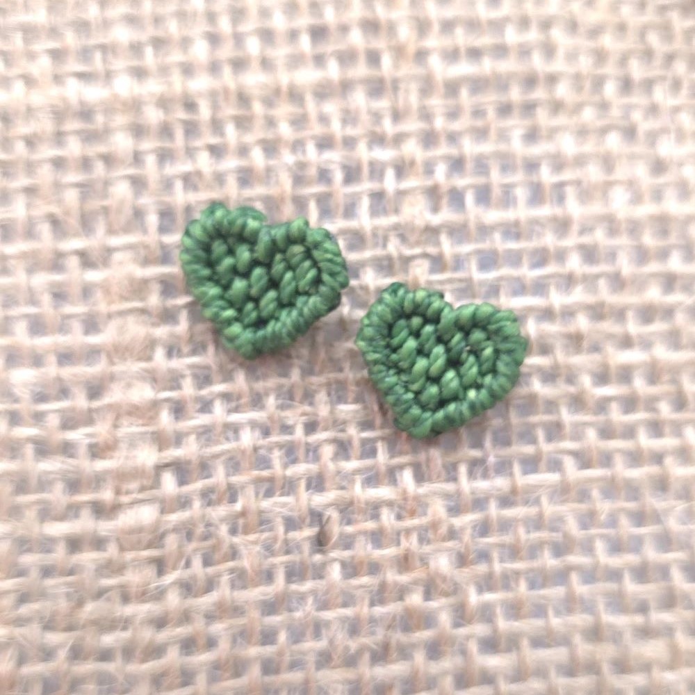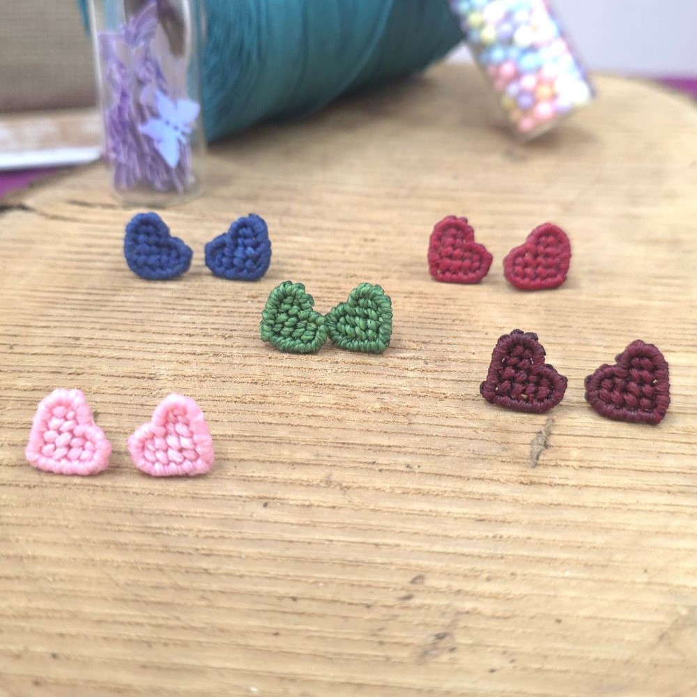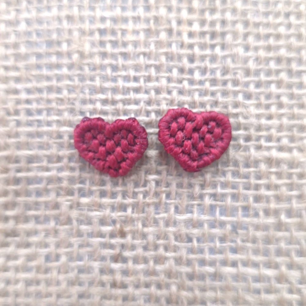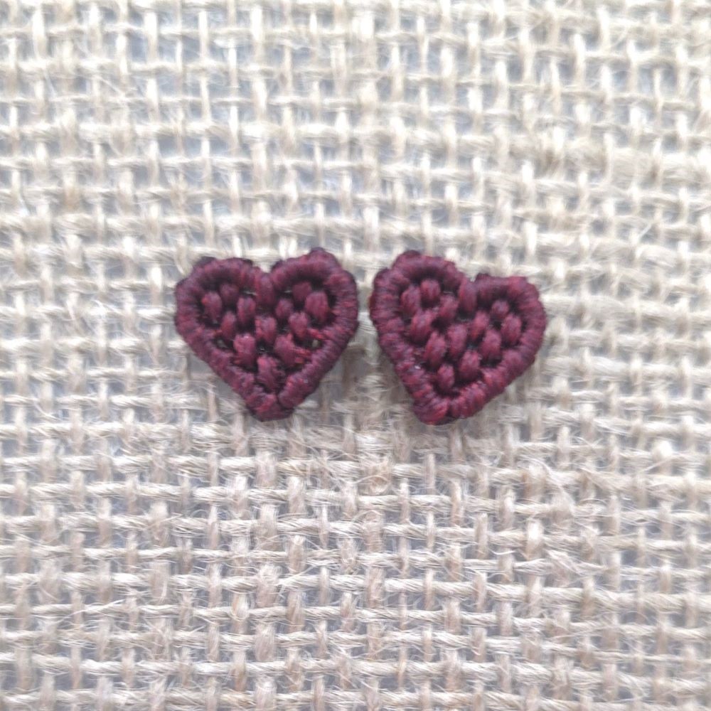 Λαμπερά, χειροποίητα σκουλαρίκια μακραμέ σε σχέδιο καρδιάς, φτιαγμένα κόμπο τον κόμπο με κηροκλωστή υψηλής ποιότητας.