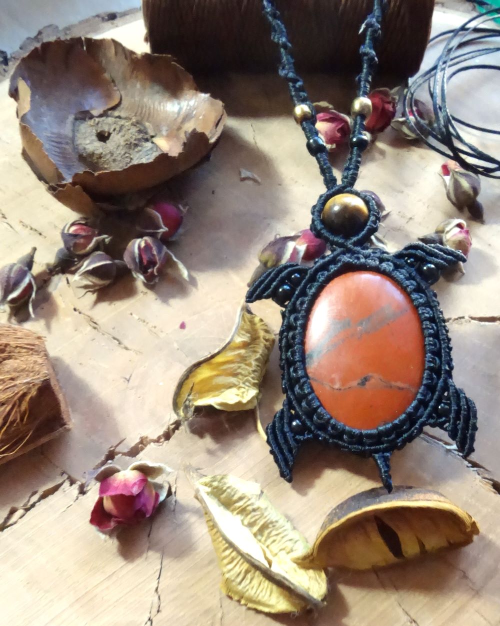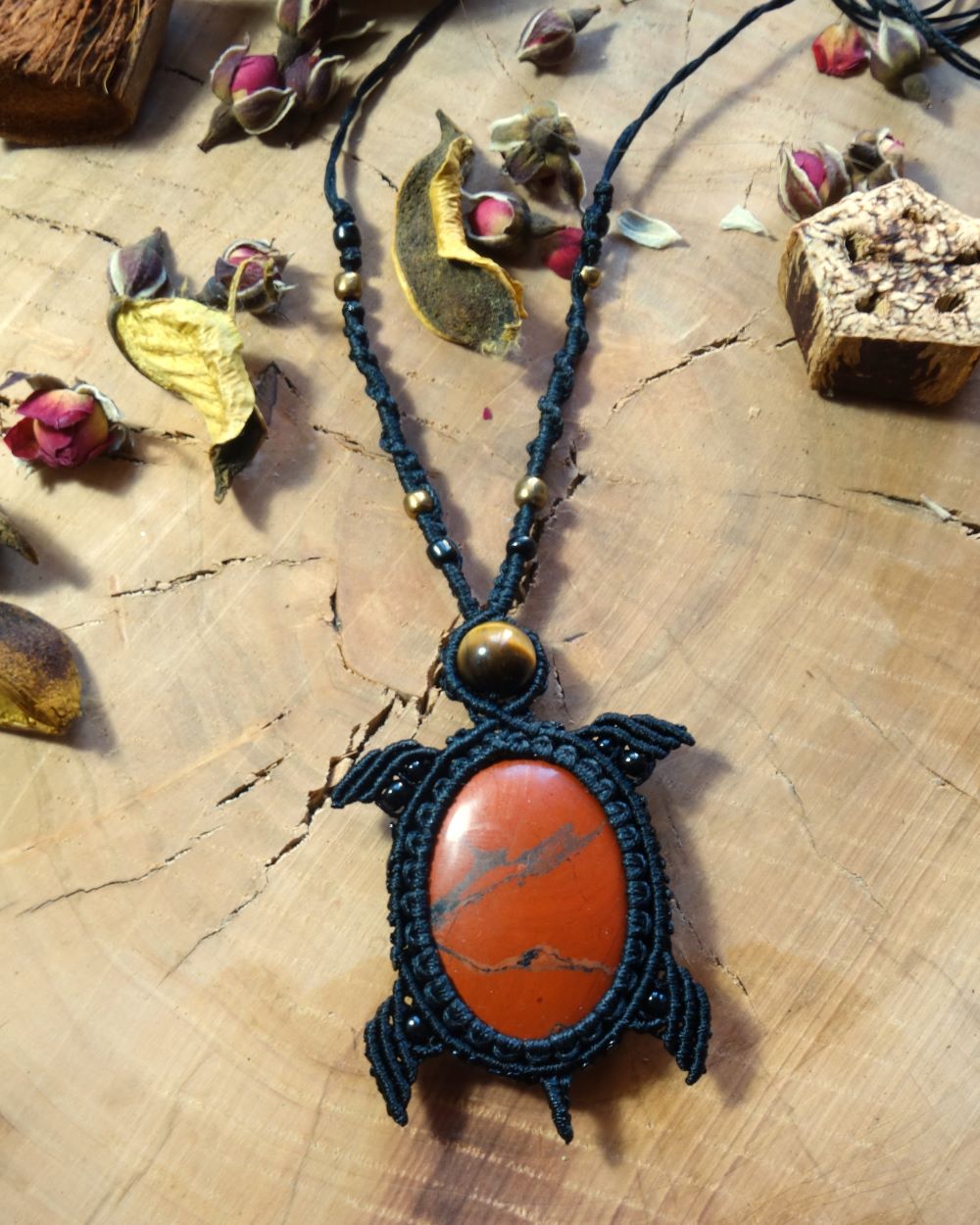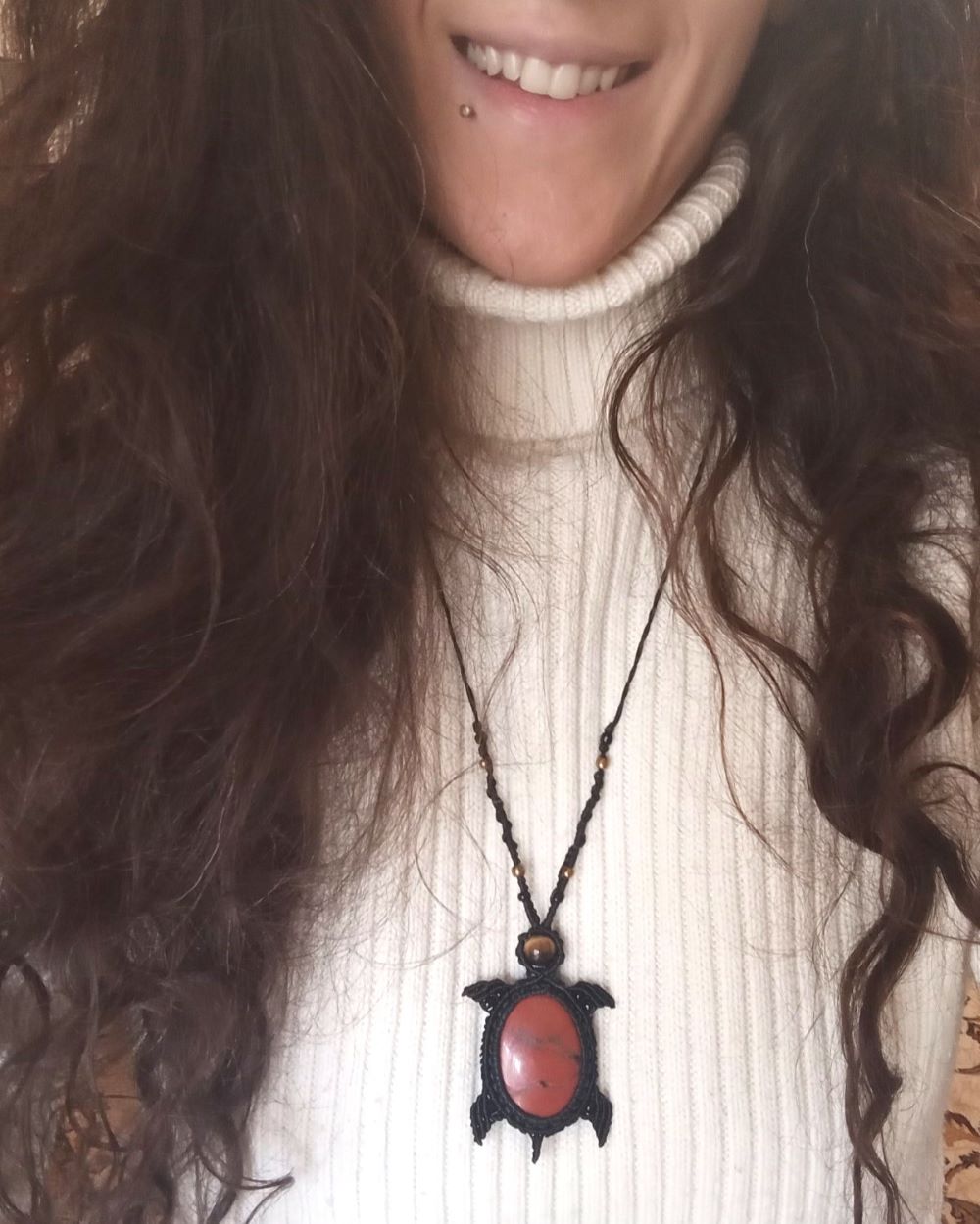 Αυτό το ιδιαίτερο χειροποίητο κολιέ μακραμέ σε σχήμα χελώνας είναι φτιαγμένο με αγάπη και προσοχή στη λεπτομέρεια.