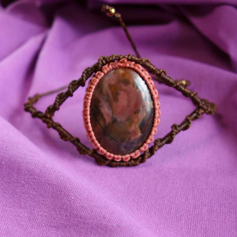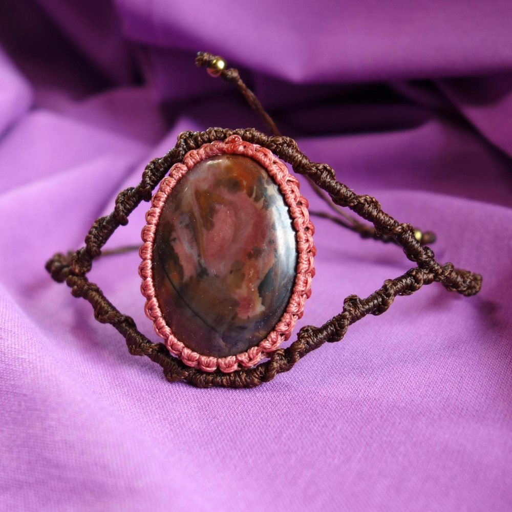 Το Wild Rose Earth είναι ένα χειροποίητο μακραμέ βραχιόλι με φυσική πέτρα Ιάσπη που ξεχωρίζει για τις γήινες ροζ καφέ αποχρώσεις της.
